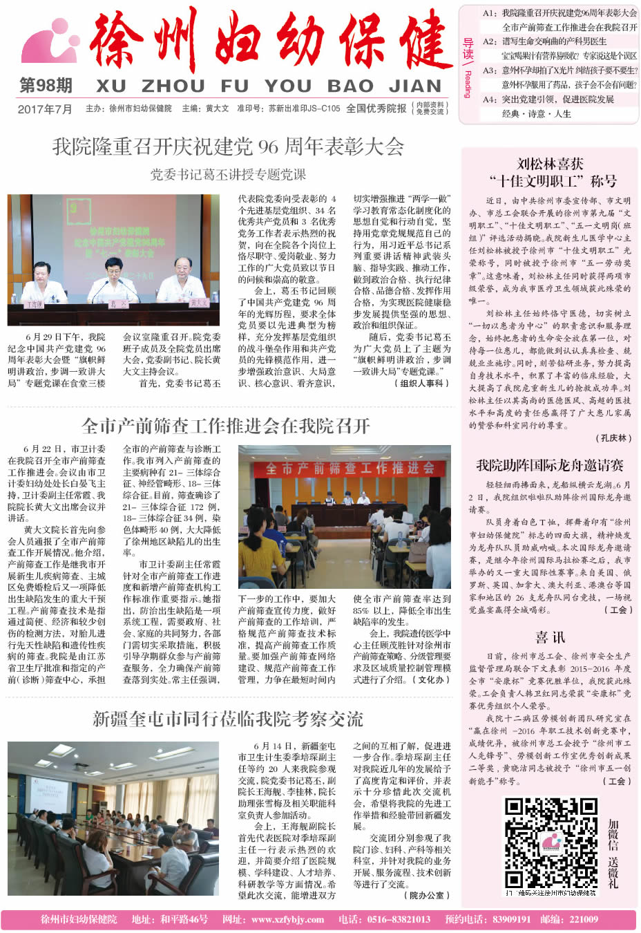 上一篇:徐州市婦(fù)幼保健(jiàn)院(yuàn)院報第97期(2017年6月)