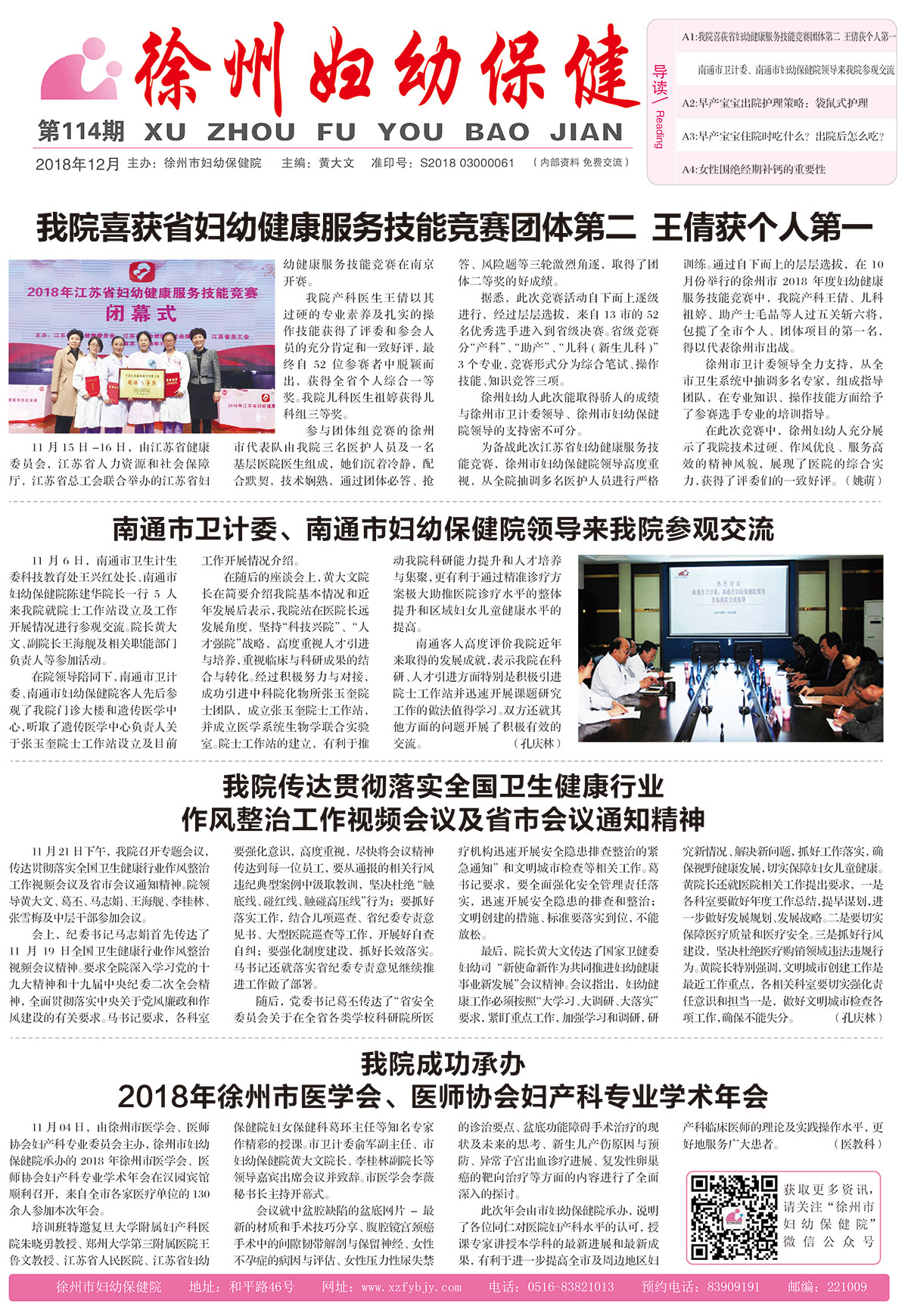 徐州市(shì)婦(fù)幼保健院院報第113期(2018年11月)