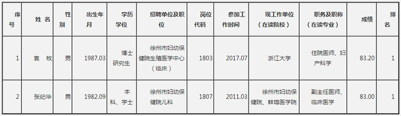 根據《2019年徐(xú)州市衛生健康(kāng)委直屬事業單位公開招聘(pìn)高層次衛生人才公告》的有關要(yào)求,以下同誌經招聘(pìn)單(dān)位及其主管部門審核合格,擬聘用,現予以公(gōng)示(公示(shì)時間2019年12月6日-2019年(nián)12月16日)。