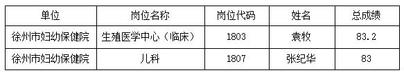 根據《2019年徐州市衛生(shēng)健康委直屬事業單位公開招聘高層次衛生(shēng)人才公告》要求,現將2019年徐州市婦幼保健院公(gōng)開招聘高層次人員(yuán)成績予以公布(bù):