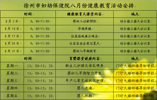 徐州(zhōu)市婦幼保健院8月份健康教育(yù)活動安排