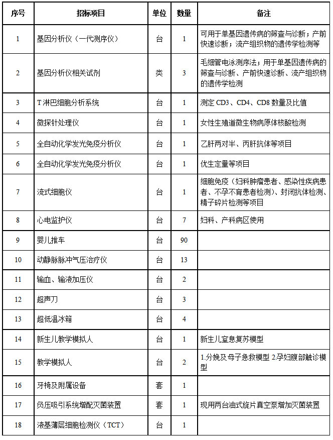 經徐州市婦幼保健院醫學裝備委(wěi)員會及招議標評審小組(zǔ)研究,擬近期對我(wǒ)院所需醫(yī)療設備進行公開要約。特邀(yāo)請合格經銷商(shāng)前來(lái)參與,公(gōng)告如下: