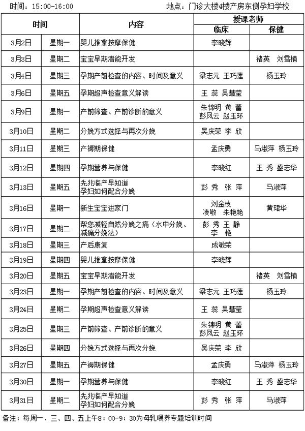 徐州市婦幼保(bǎo)健院2015年3月孕婦學校課程安排