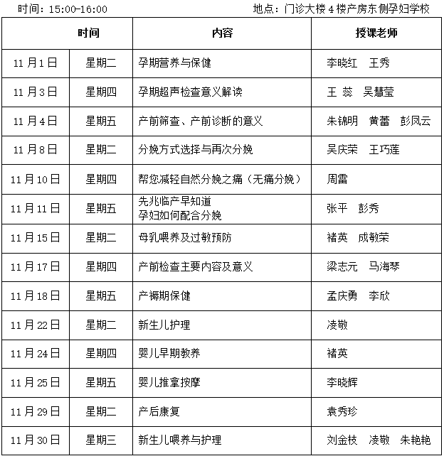 徐州市婦幼保健院2016年11月份孕婦學校課程安排(1)