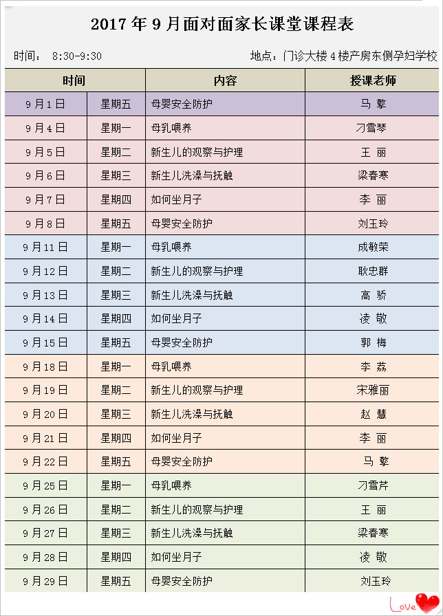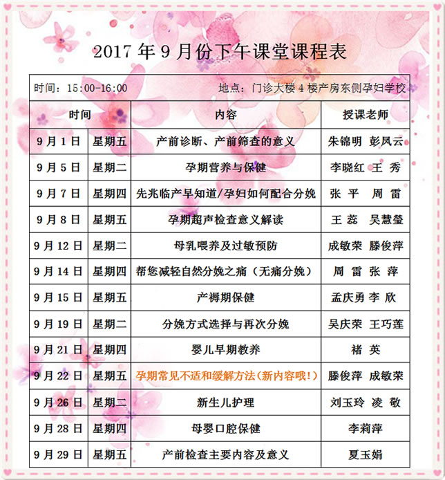 徐州市婦幼保健院2017年9月份孕婦學校課程安(ān)排