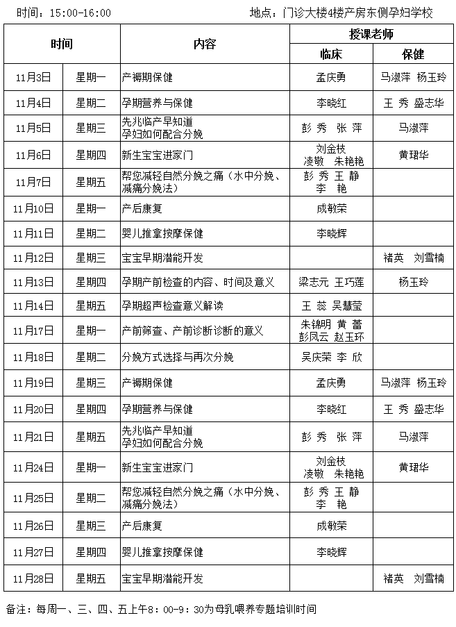 徐(xú)州市婦幼保健(jiàn)院2014年11月(yuè)孕婦學(xué)校課程安排(pái)