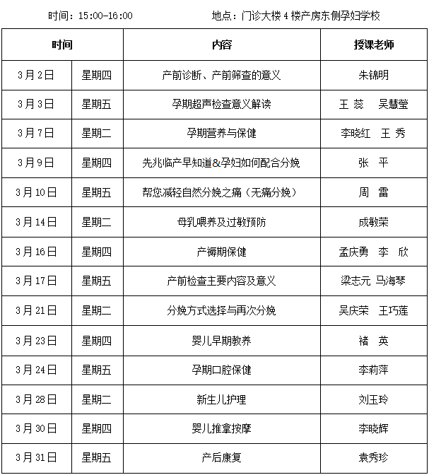 徐州市婦(fù)幼保健院2017年3月份孕婦學校課程安排