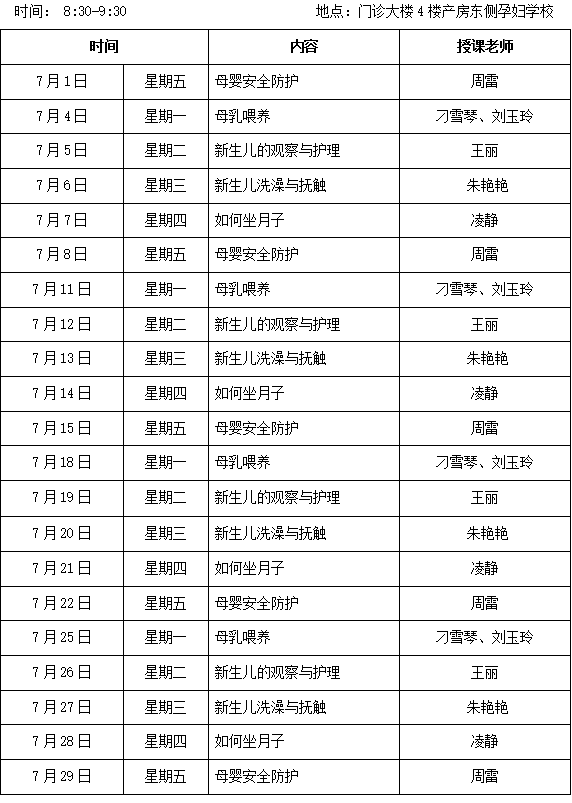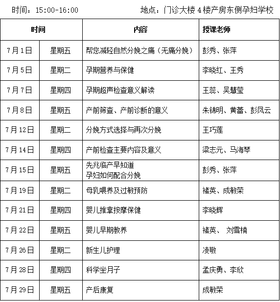 徐州市(shì)婦(fù)幼保健(jiàn)院2016年7月(yuè)份孕婦學校課程安排