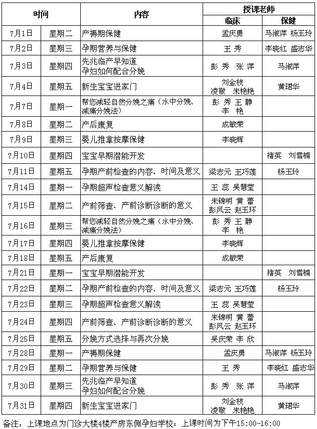 徐州市婦幼保(bǎo)健院2014年7月孕婦學校課程安排