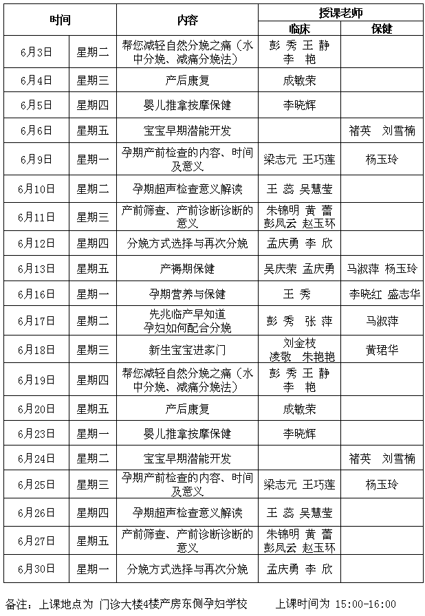 徐州市婦幼保健院2014年6月孕婦課堂課程安排(pái)