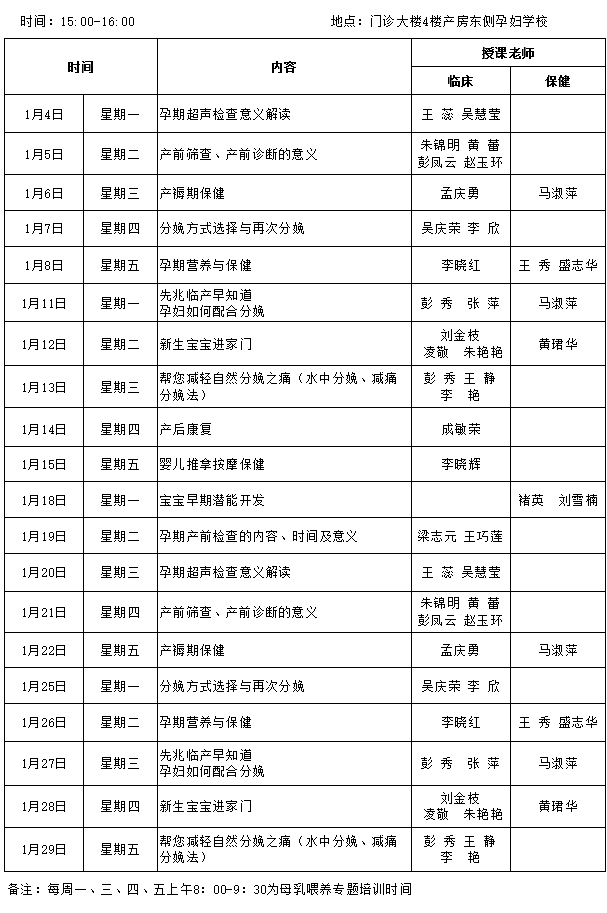 徐州(zhōu)市婦幼保健院2016年1月孕(yùn)婦學校(xiào)課(kè)程安排