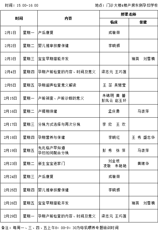 徐州市婦幼保健院2016年2月孕婦學校課程安排(pái)