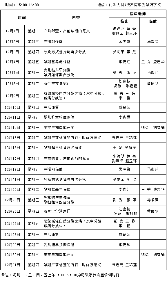 徐州市婦幼保健院2015年(nián)12月孕婦學校課程安排