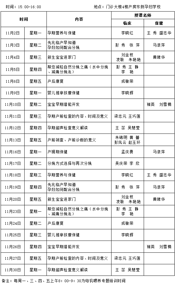 徐州市婦幼保健(jiàn)院2015年11月孕婦學校課程安排
